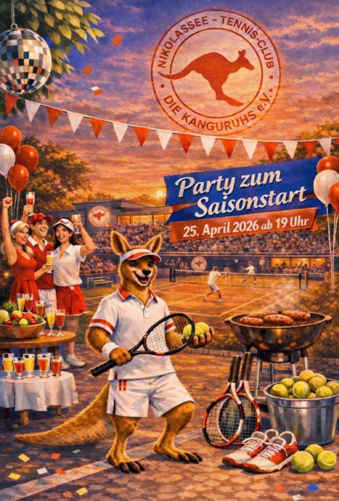 Am 25.04.2026 ab 19 Uhr möchten wir mit Euch standesgemäß die neue Freiluftsaison im NTC einläuten! 😊Schnappt Euch Eure liebsten Doppelpartner/-innen oder Lieblingsmenschen und zeigt Euch im Club! Wer möchte, hat zumindest gern ein Accessoire in den Vereinsfarben ROT/ WEISS dabei! Euch wird schon etwas einfallen … ;-)